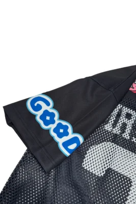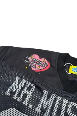 Mr. Mushies Game Day Jersey Black. Cop the Game Day Jersey for the the perfect blend of street and sportswear. Featuring a lightweight, mesh design and a trendy cropped fit, this jersey is the perfect way to elevate your look. Don’t miss out on this must-have piece.