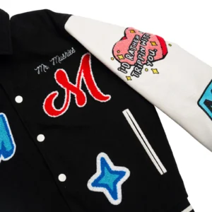 The Goods Letterman Jacket by Mr. Mushies. Get ready to rock the streets with The Goods Letterman! This jacket not only offers sleek style, but also features our custom patch designs. Perfect for any occasion, this jacket is a must-have for any goods lover. (Don’t Miss Out!)